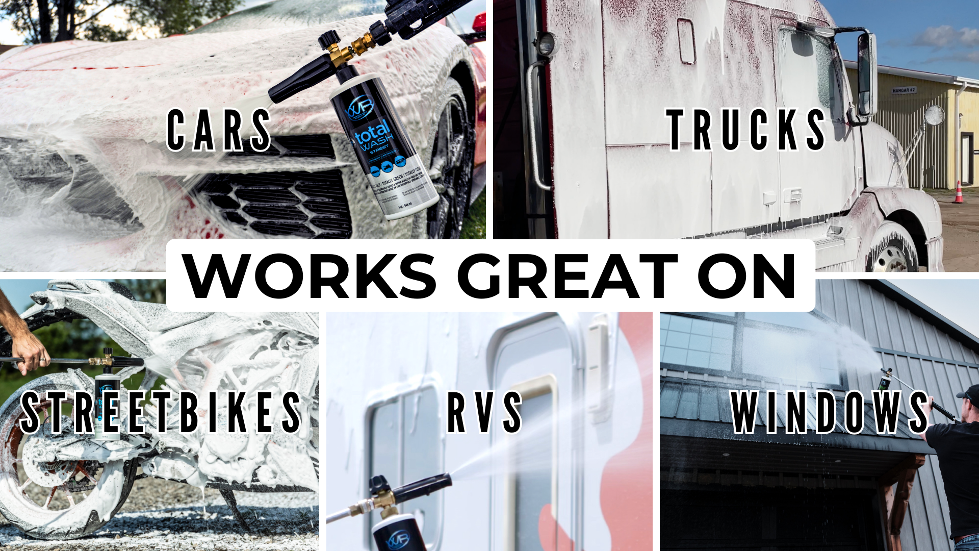 Total Wash Street is meant to be used on finer surfaces and materials that you would typically find on your street vehicles. It was specially designed to be tough on road grime, bug guts, and brake dust.